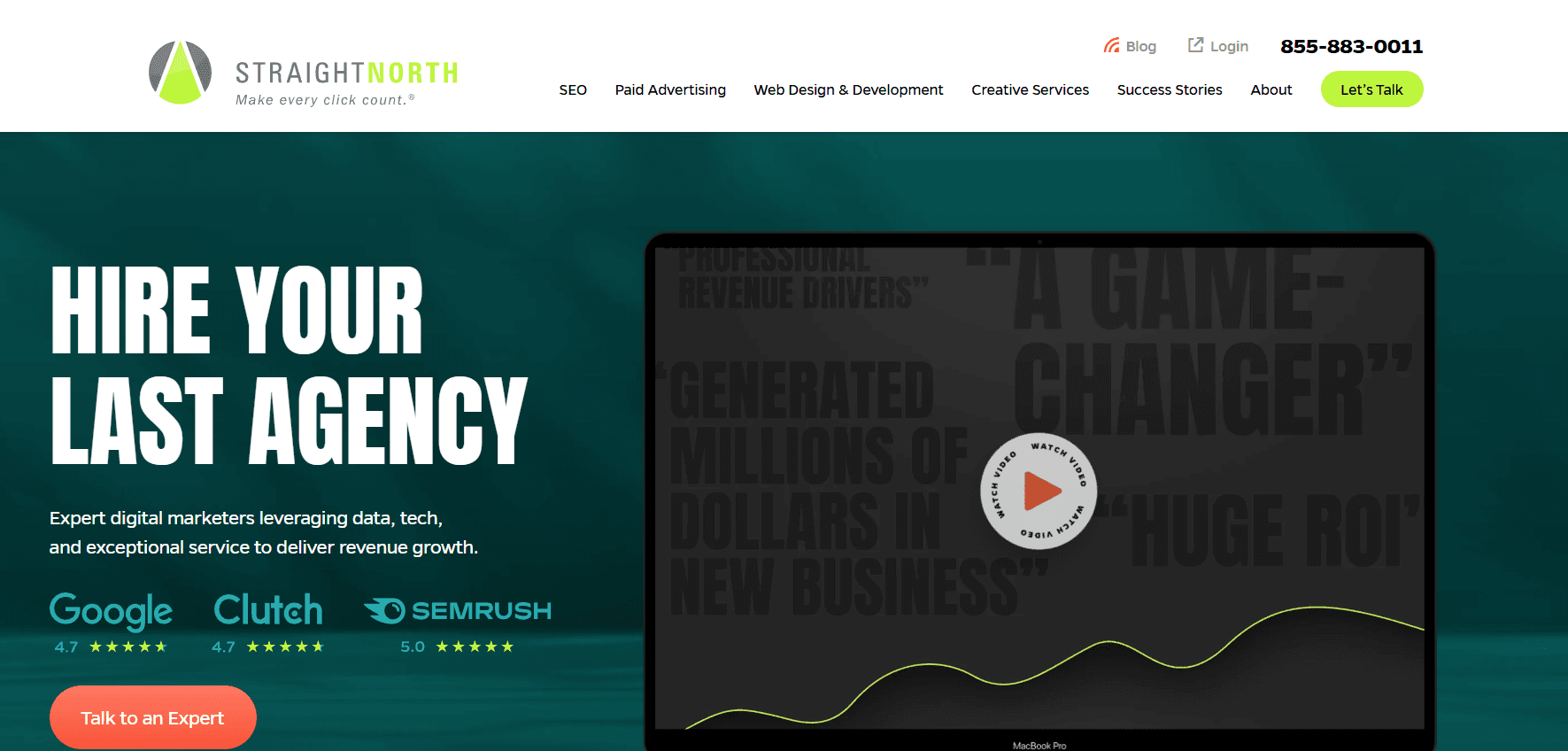 Straight North brings over 25 years of experience and a proprietary GoNorth! reporting platform that integrates data from Google Analytics and call tracking to provide real-time campaign performance visibility. Their SEO approach includes keyword research, high-quality content creation, technical audits, and authoritative link acquisition, all tailored to each client's competitive landscape.