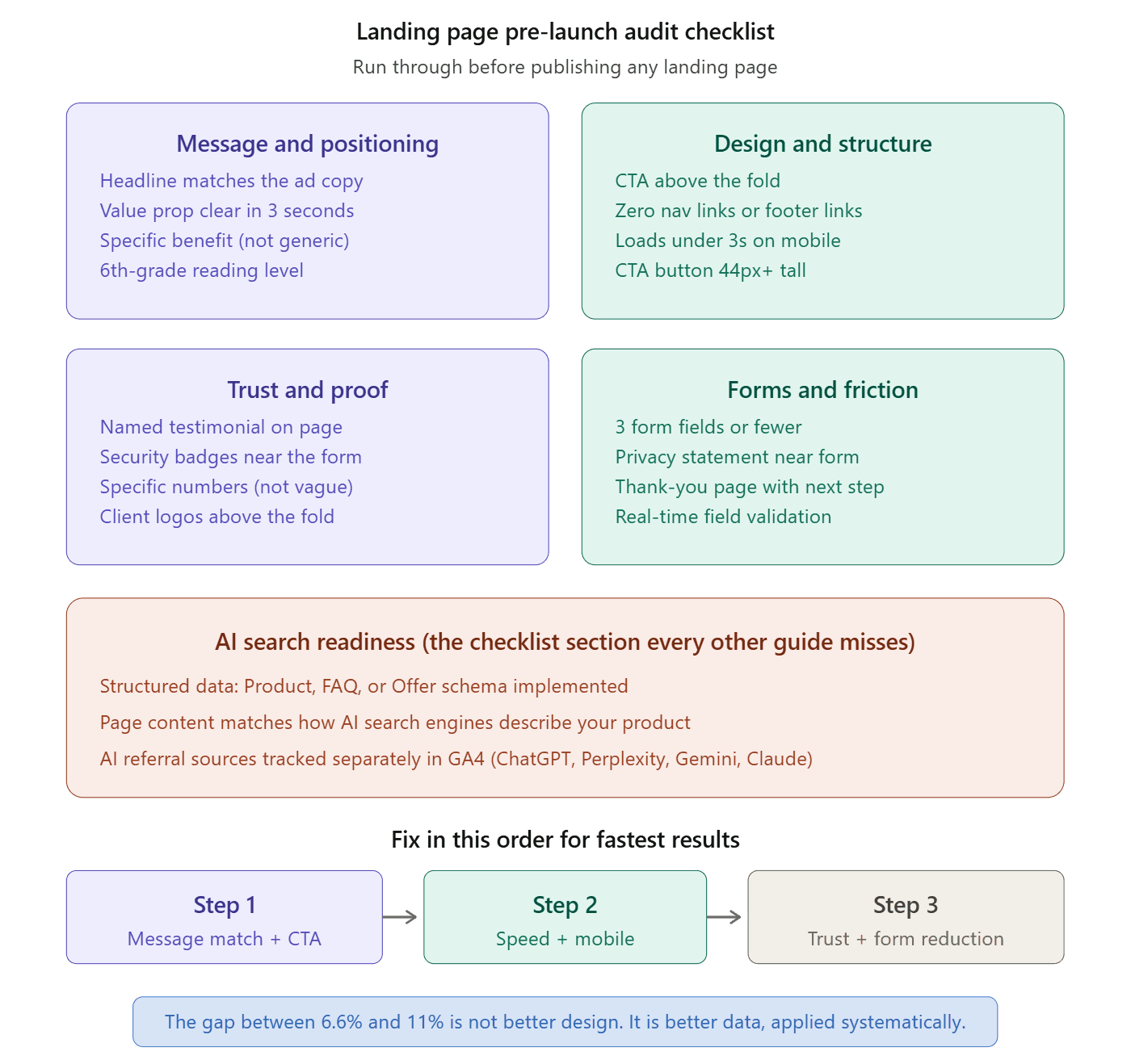 Run through this checklist before publishing any landing page: