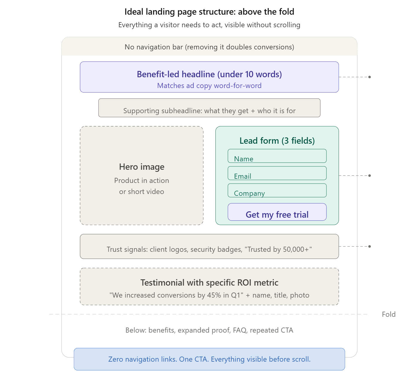 Open your highest-traffic landing page right now. Check three things: does the headline match the primary ad driving traffic to it? Does the page load in under 3 seconds on mobile? Is there one and only one CTA?