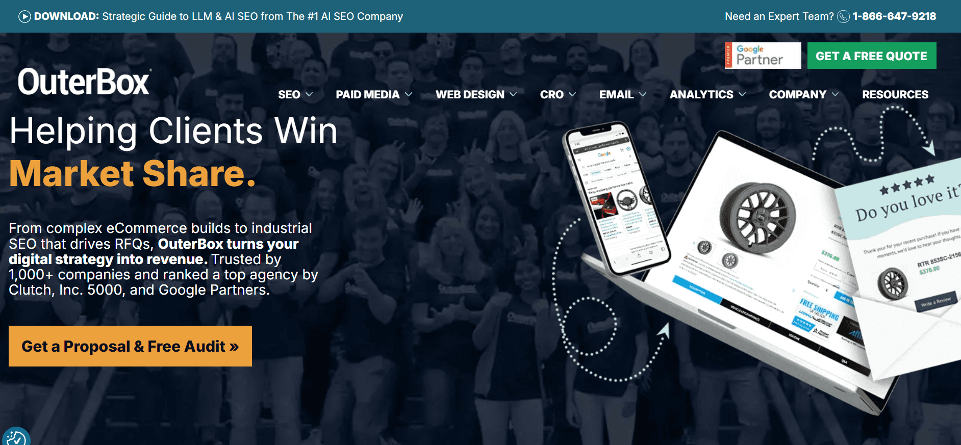 7 | OuterBox | E-Commerce SEO | Shopify and Magento SEO, CRO, shopping feeds | ⚠️ Partial GEO | Custom | 250+ | E-commerce brands |