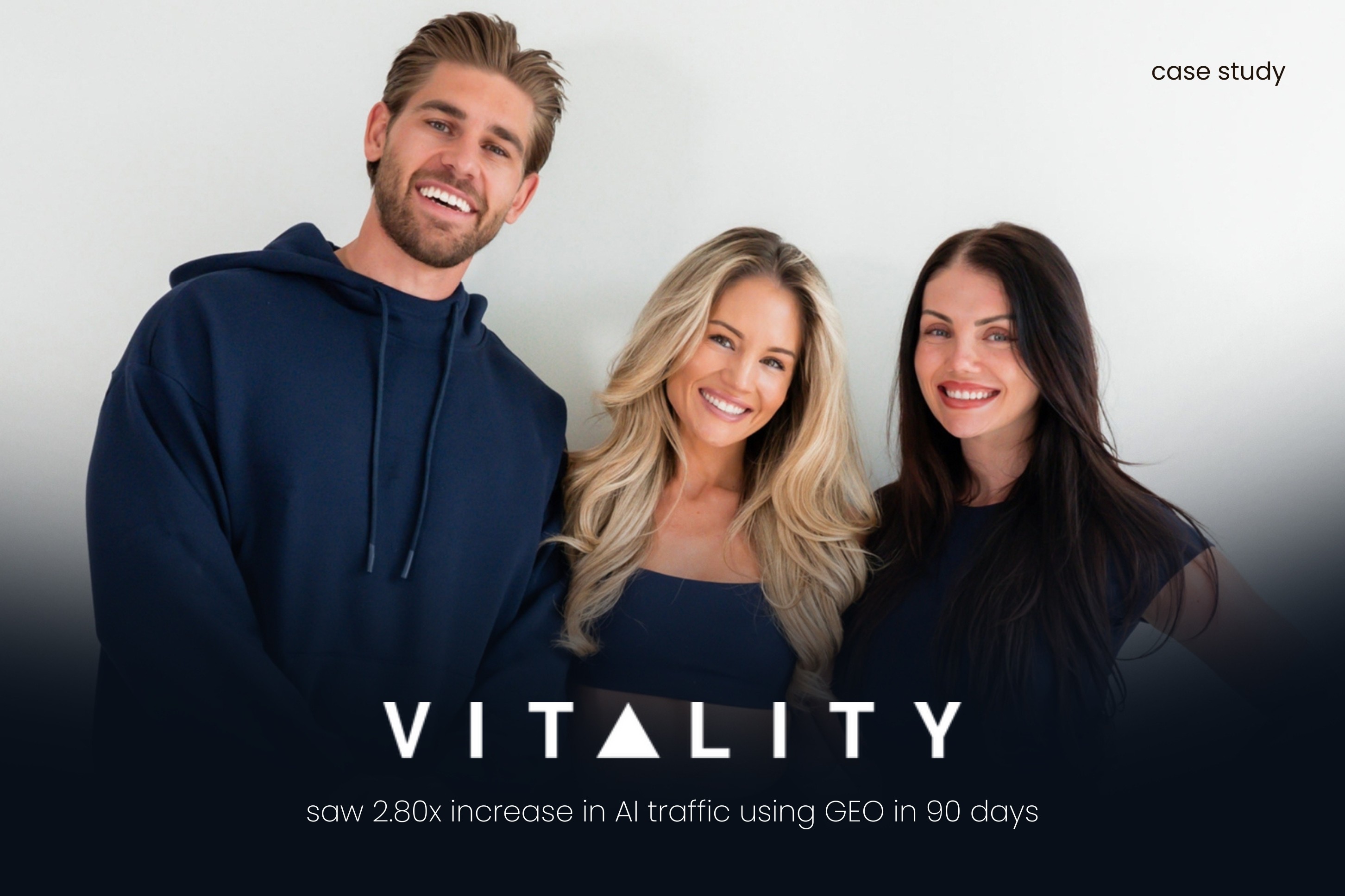 Vitality transformed their digital marketing performance by pioneering Generative Engine Optimization (GEO), delivering breakthrough results across ChatGPT, Perplexity, and Google AI Overviews in just 90 days.