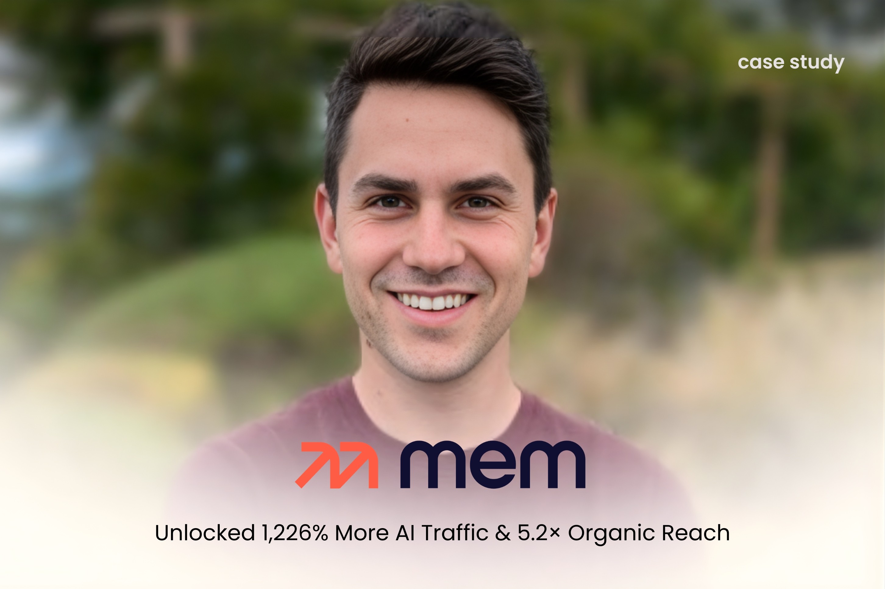Mem.ai is an AI-enhanced note-taking and knowledge management application designed to streamline how users capture, organize, and retrieve information. Facing an evolving landscape shaped by increasing reliance on AI-based discovery tools, Mem.ai needed to elevate its organic presence and establish strong authority signals to grow sustainably across classic search and next-generation AI search surfaces.