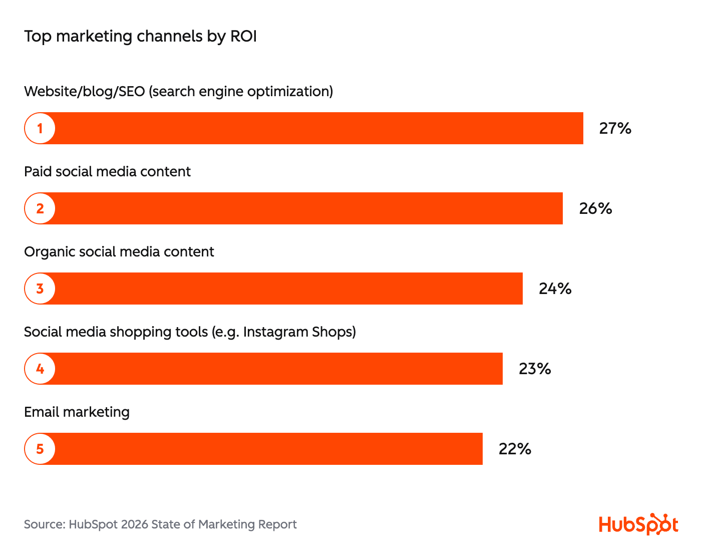 According to HubSpot’s State of Marketing Report, SEO and blogging are still the top marketing channels by ROI.