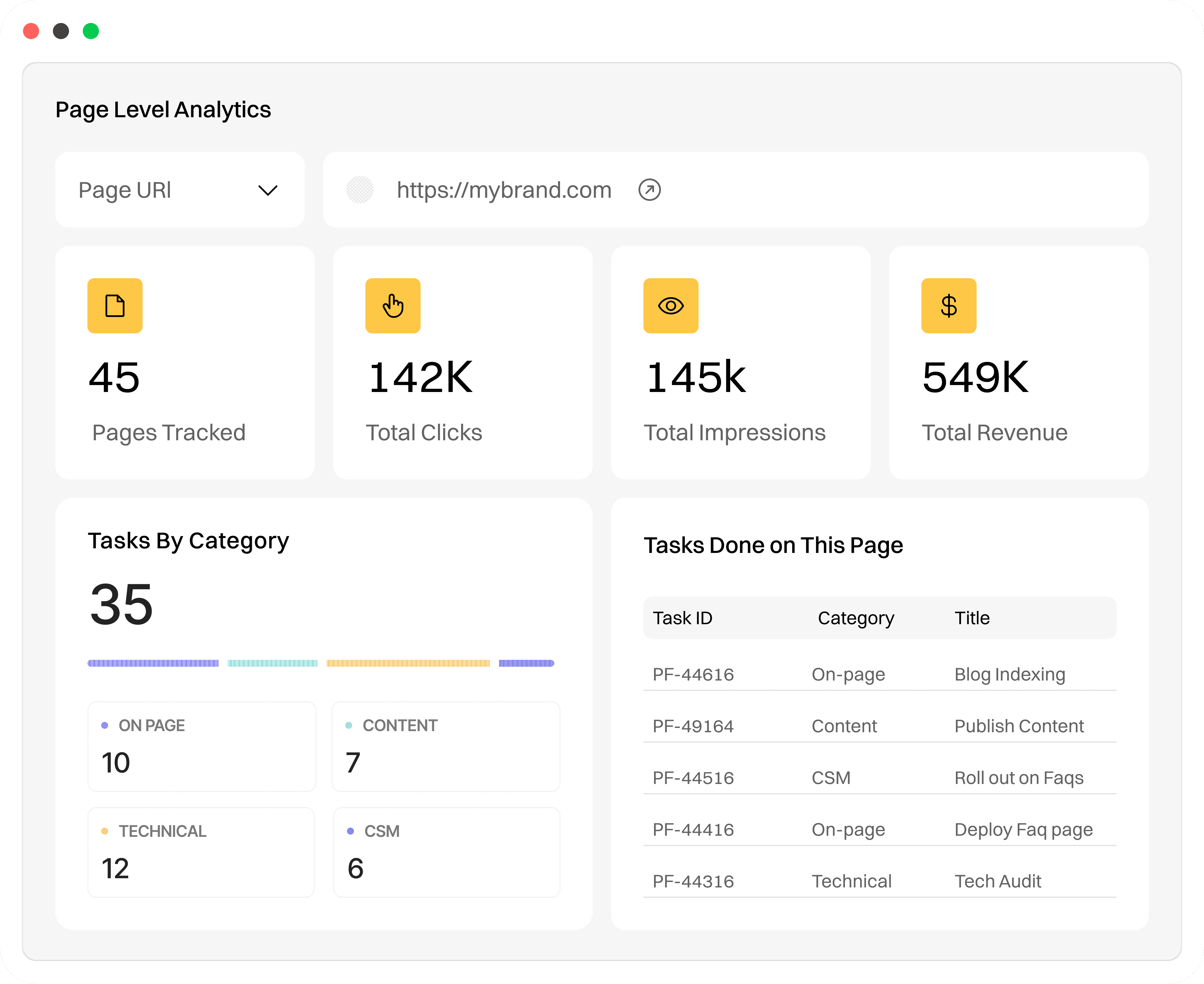 Changes in rankings, traffic, CTR, and revenue are mapped against the exact actions that preceded them. No more guessing what worked.