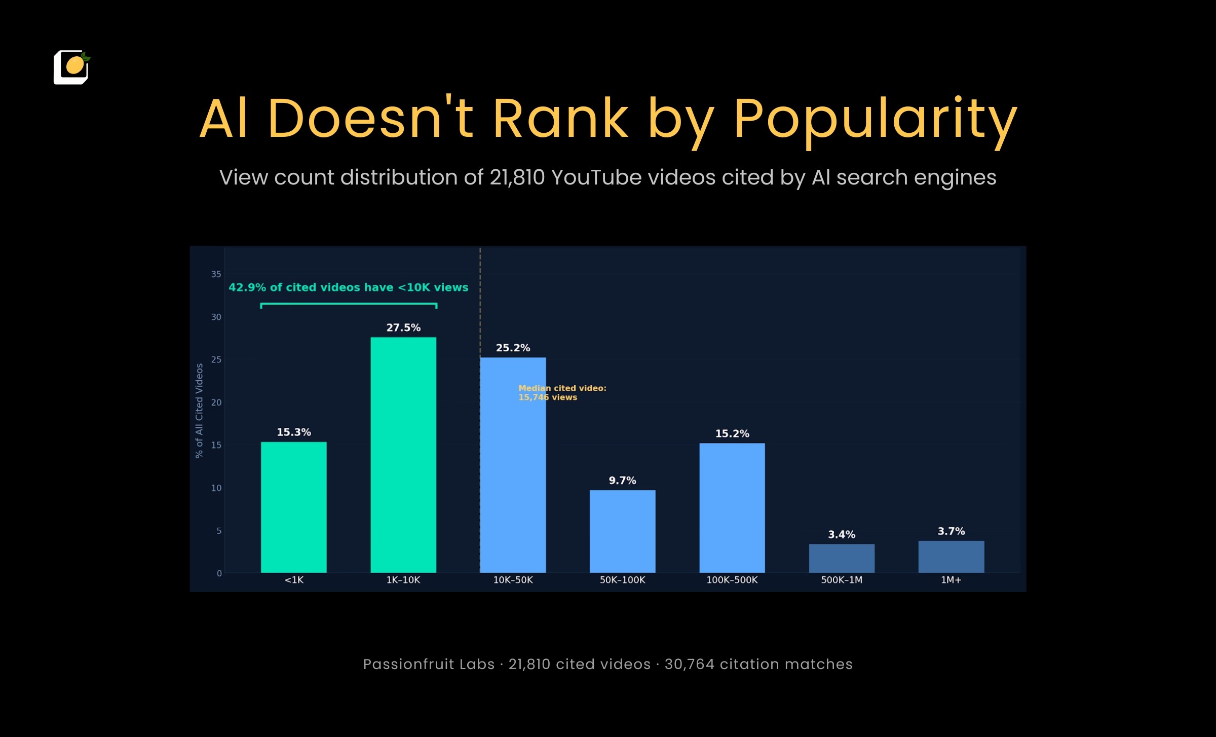 The median cited video has 15,746 views. The bottom quartile sits at 2,546.