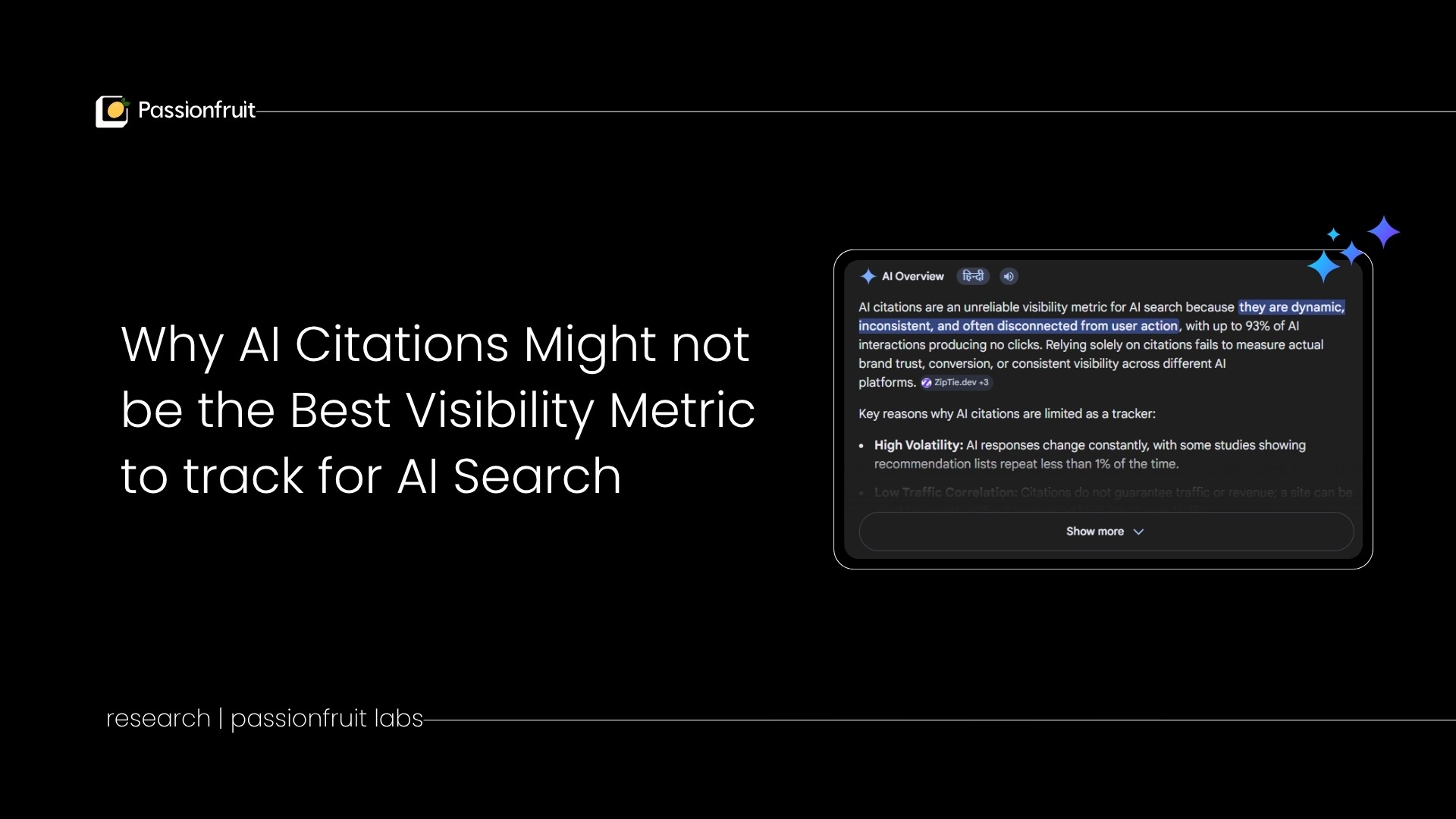 This study was produced by Passionfruit Labs. Passionfruit is a B2B SEO, GEO, and AI visibility agency that helps SaaS companies build measurable presence across traditional search and AI discovery channels. We sell AI visibility tracking and optimization services. It is in our financial interest to argue that AI visibility measurement requires sophisticated, multi-layered approaches rather than simple citation counting tools.